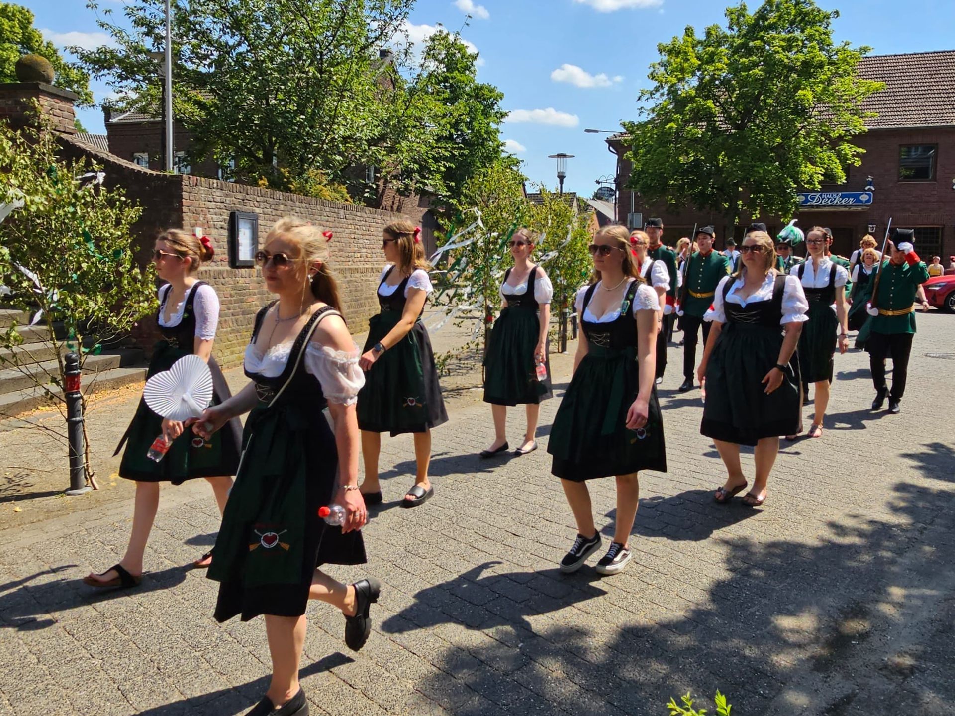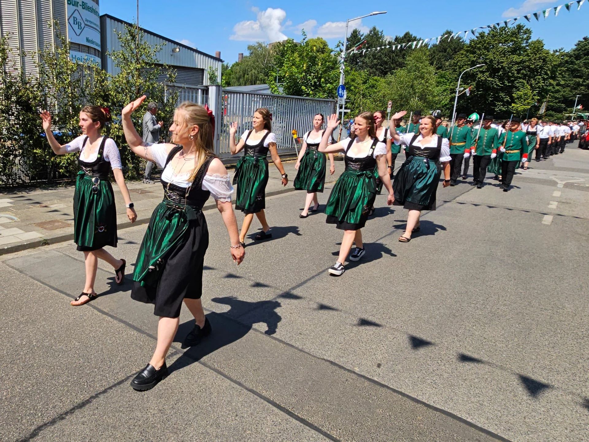 Die grünen Schützenjacken fanden sie wenig weiblich. Und so entschieden sie sich für ein schickes Dirndl, welches sich sehr gut in das grün-weiße Bild unserer Bruderschaft integriert und bereichern so jeden Festzug und Veranstaltung.